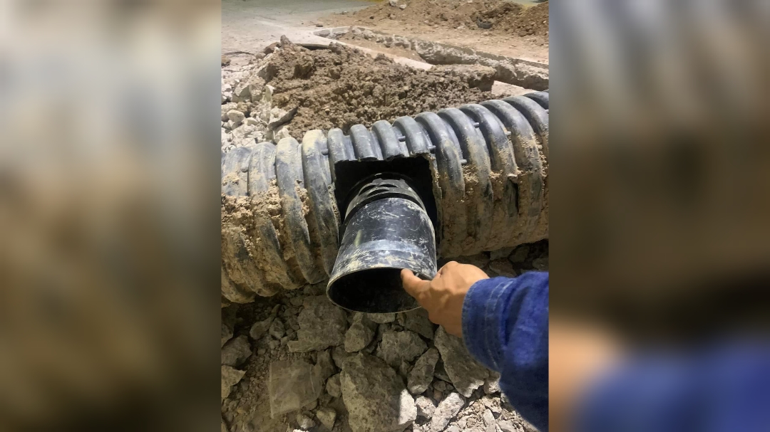 En los dos videos se ilustra que la tubería centra del drenaje es conectada a la tubería de las viviendas con un mal procedimiento; se aprecia como el tubo central tiene un corte cuadricular y el tubo de los domicilios un corte circular, y al conectarlos obviamente que no embonan de manera adecuada y para solventar esa falla se coloca cemento para rellenar la oquedad que no embona y lo cual al futuro va a provocar un hundimiento y el taponamiento de esa red de drenaje supuestamente reparada.