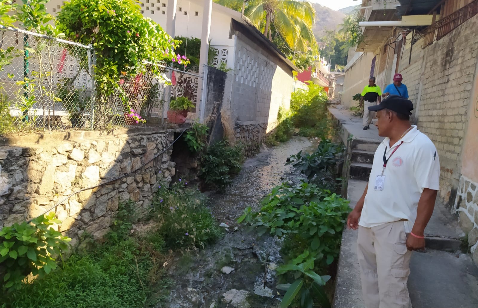 En la zona 14, comprendida en las colonias Praderas de Costa Azul, Hermenegildo Galeana, Vista Hermosa y Barrio Negro, se recorrieron cuatro cauces pluviales con una longitud de 4.4 kilómetros, 12 presas gavión, también se revisó un desarenador.