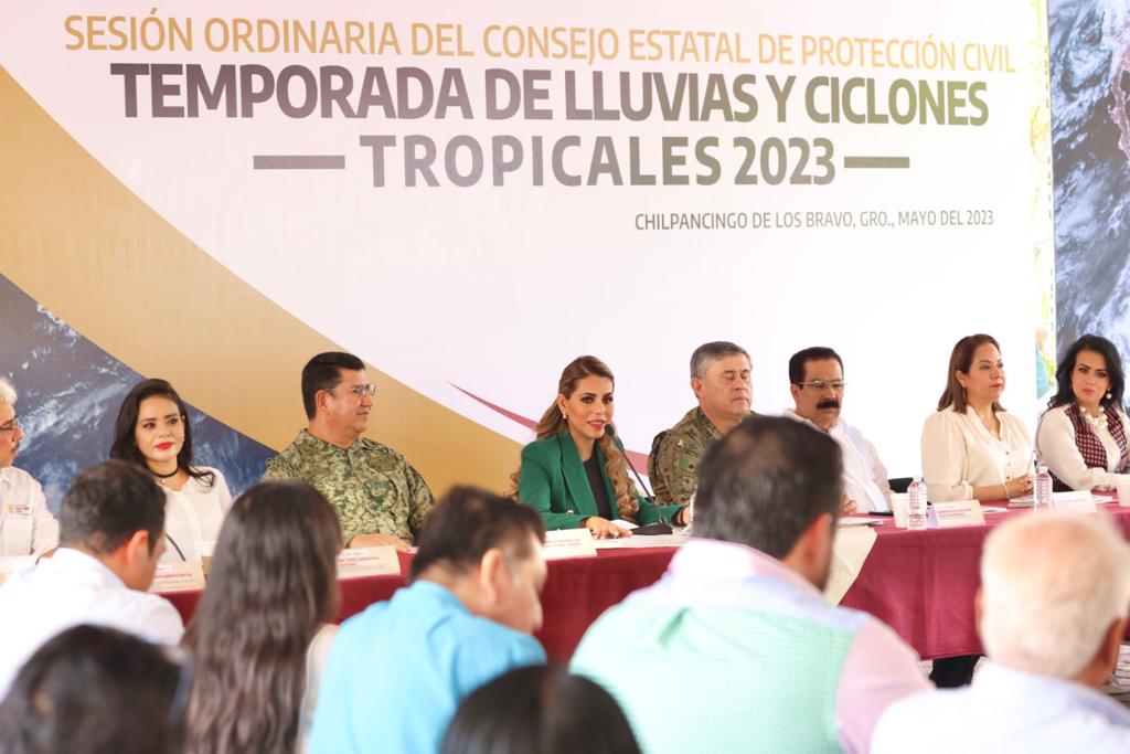 Chilpancingo, Gro. 09 de mayon de 2023.- La gobernadora, Evelyn Salgado Pineda sostuvo que la política de Protección Civil en su gobierno es fundamental para salvaguardar vidas y aminorar los daños ante cualquier fenómeno natural que afecte a Guerrero y convocó a su gabinete a estar atento ante esta temporada de lluvias y ciclones tropicales que inicia este lunes 15 de mayo y concluye el próximo 30 de noviembre.