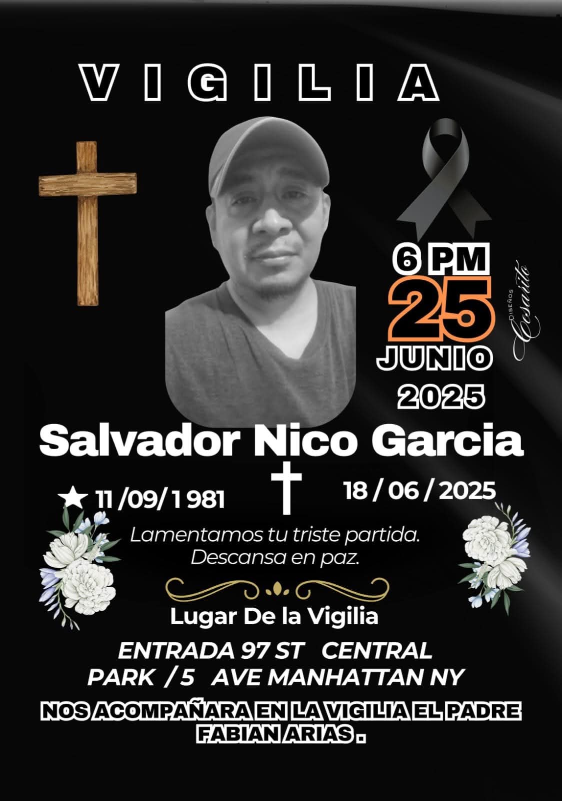 La hermana de Salvador, Beatriz Nico García, dio a conocer que 5 de julio serán el velorio del cuerpo en la ciudad de Nueva York y que continuaban con la recaudación de fondos para repatriar los restos a la comunidad de Aquilpa, después del velatorio.