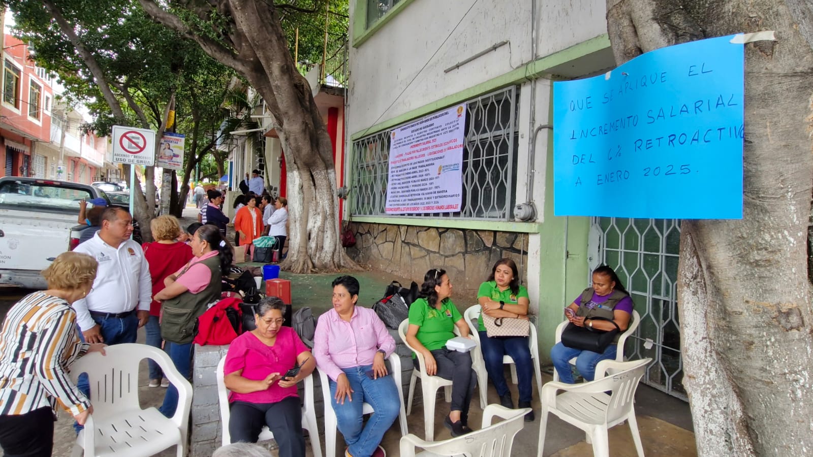 Unos 50 trabajadores se plantaron antes de las 09:00 de la mañana al exterior de las oficinas y bloquearon también la calle 16 de septiembre del Barrio de San Mateo. Entre sus demandas, incremento salarial correspondiente al 2025 y la entrega de uniformes e impermeables para hacer frente a la temporada de lluvias.