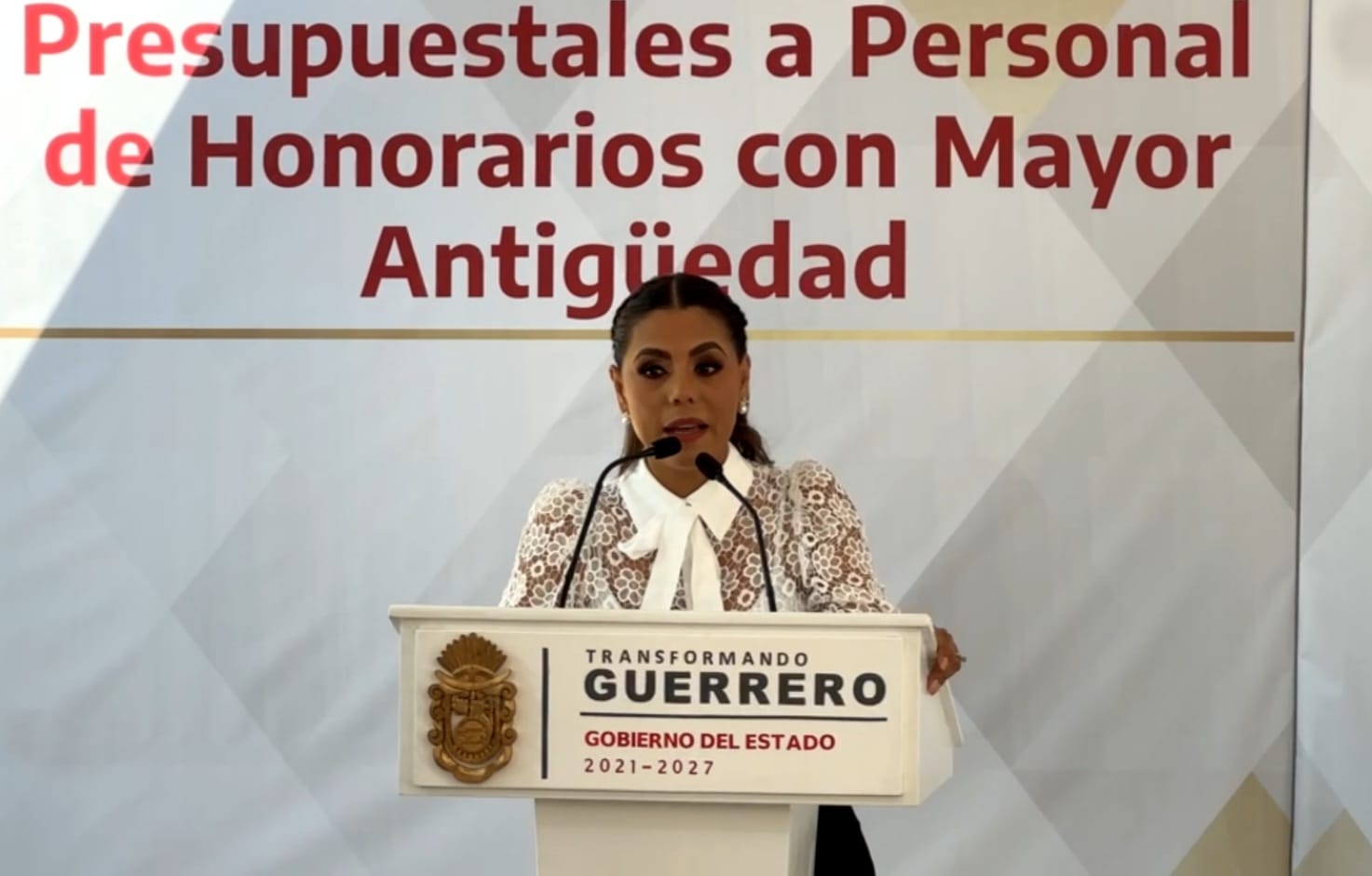 La gobernadora encabezó la entrega de asignación de claves presupuestales a personal administrativo contratado por honorarios con mayor antigüedad en la Secretaría de Educación en Guerrero (SEG). Hizo un reconocimiento a los trabajadores “quienes durante muchos años han brindado su vida al servicio de la educación en nuestro estado” y dio a conocer que este viernes se entregaron 14 plazas y que en lo que va de su administración se han entregado 36 bases a trabajadores administrativos que estaban fuera del Fone.