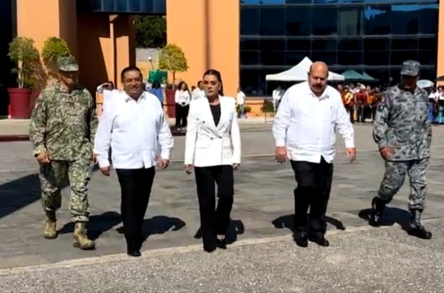 En el homenaje acompañaron a la gobernadora, la presidenta del DIF estatal, Liz Salgado Pineda; el presidente de la Junta de Coordinación Política del Congreso, Jesús Urióstegui García; el presidente del Tribunal Superior de Justicia (TSJ), Ricardo Salinas Sandoval; el alcalde de esta capital, Gustavo Alarcón Herrera; el presidente de la Mesa Directiva del Congreso, Jesús Parra García; el comandante de la IX Región Militar, Ernesto José Zapata Pérez; el comandante de la 35 Zona Militar, Jorge Pedro Nieto Sánchez; la encargada de despacho de la Secretaría de Gobierno, Anacleta López Vega; el Fiscal, Jesús Torres Ojeda; el coordinador estatal de la Guardia Nacional, Oscar García Ponce de León; la delegada de la FGR, Neyra Salgado Miranda.