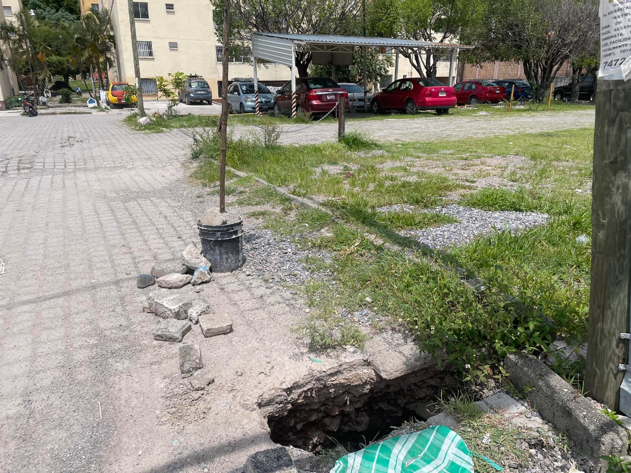 Además, además del socavón, denunciaron que la cancha de usos múltiples presenta grietas en sus muros y en el piso, lo que representa un riesgo para los jóvenes que a diario practican deporte en el lugar.