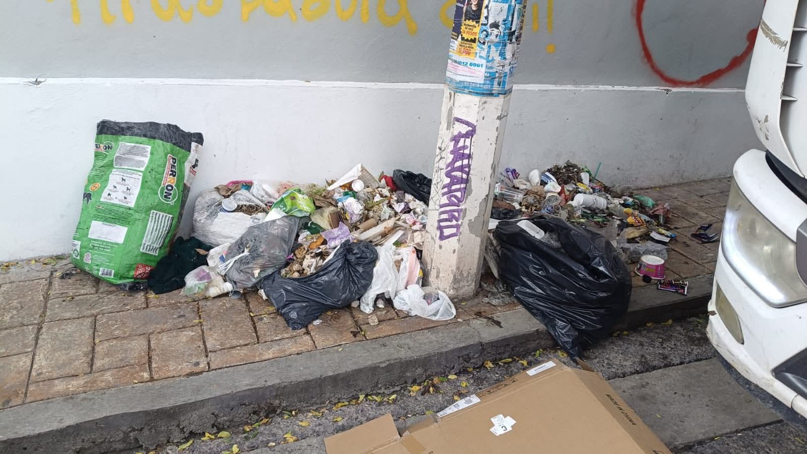 Adjunta a publicación en redes sociales fotografías en las que muestra evidencias como un montón de desechos en la esquina de edificio Juan N. Alvarez y de la barranca de Apatzingo
