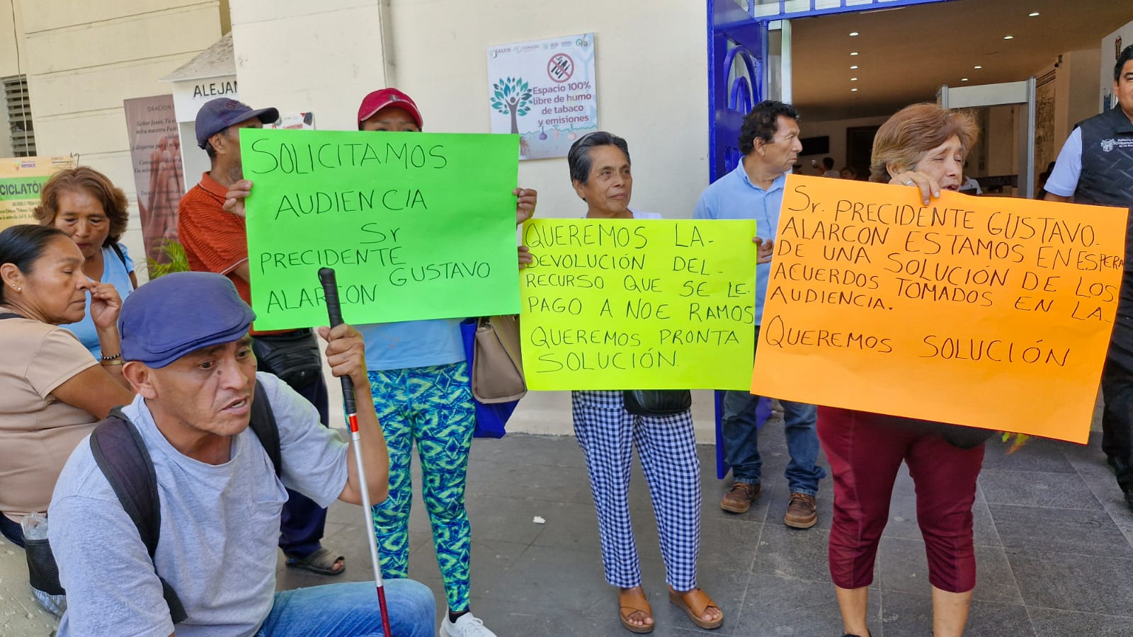 Unas 8 personas encabezadas por el invidente Silvestre Rodríguez Fernández, portaban pancartas en las que pedían una audiencia con el presidente municipal, Gustavo Alarcón Herrera.