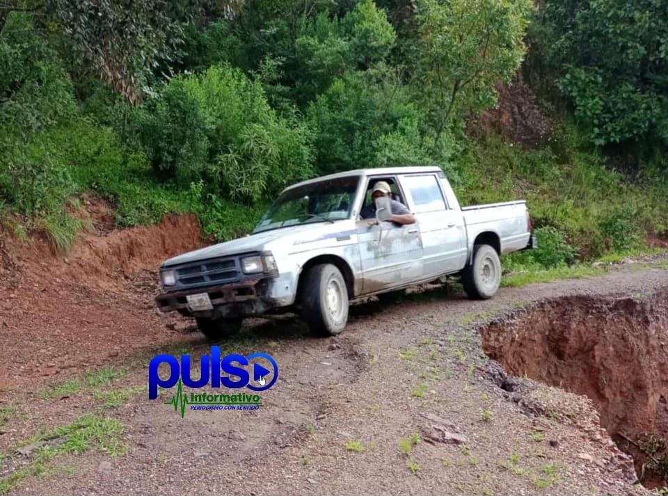El tramo que está antes de llegar a la comunidad de Alcozacán ha colapsado y sólo queda un metro para pasar; autoridades alertaron de un enorme socavón y la cuarteadura justo en una curva