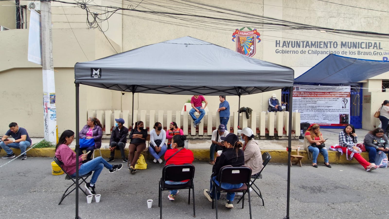 Este jueves unas 30 personas volvieron a bloquear la Avenida Ignacio Ramírez frente al Ayuntamiento, donde colocaron una lona y desplegaron un toldo. Insisten en que sea destituido el director de Recursos Humanos, Noé Sánchez Hernández.