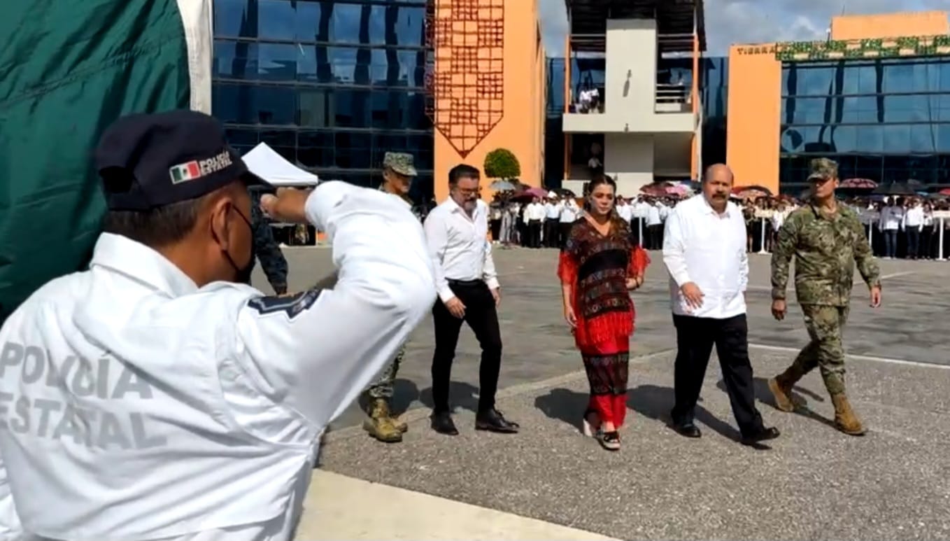 La gobernadora encabezó los honores a la bandera que corresponden al mes de septiembre en la explanada de Palacio de Gobierno en donde estuvo acompañada de integrantes de su gabinete, del poder Judicial, Legislativo y autoridades civiles y militares. Evelyn Salgado Pineda señaló que los lábaros patrios son “símbolos vivos de nuestra identidad y de nuestra historia; septiembre es sin duda el mes más emblemático de nuestro calendario cívico; es el mes patrio que nos recuerda que la libertad, la justicia y la soberanía no son dádivas, sino conquistas que se alcanzan con valentía, con esperanza y con el esfuerzo colectivo de un pueblo unido”.