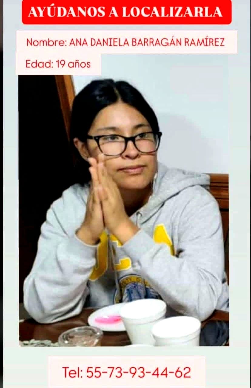 La joven Ana Daniela Barragán Ramírez, tiene 19 años de edad, estudiante de la Facultad de Ingeniería del Campus Cuautitlán, no tiene tatuajes y fue vista en imágenes donde la llevan cargando en una sábana. Pusieron a disposición el número de teléfono 55-73-93-44-62, para cualquier información que puedan aportar sobre donde está hospitalizada o su estado de salud.