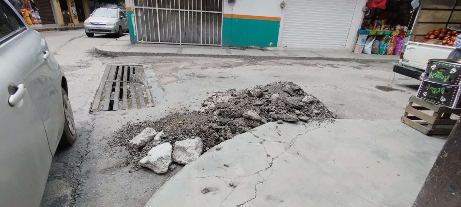 Consideraron que con las lluvias de estos días, esa tierra y piedras se vayan a las coladeras y colapsen el drenaje, por ello hicieron un llamado al gobierno municipal a que retiren ese escombro.