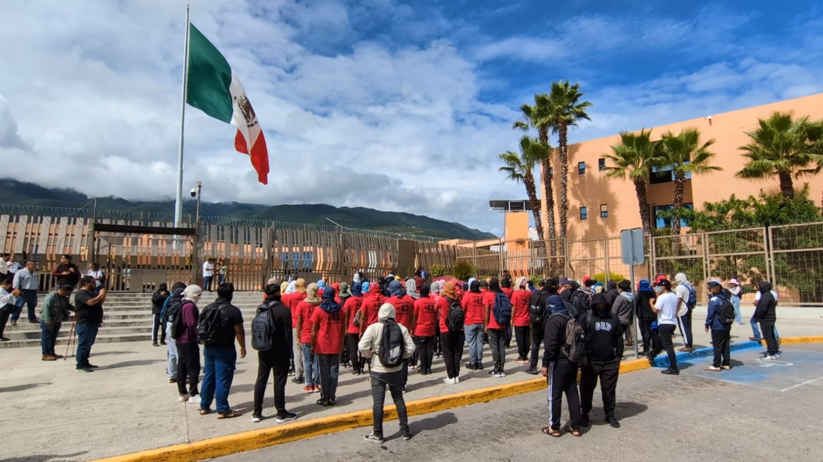Chilpancingo, 6 de octubre de 2025.- Egresados de la Escuela Normal Rural de Ayotzinapa «Raúl Isidro Burgos» se manifestaron al exterior de la Sede del Poder Ejecutivo para exigir la entrega de plazas docentes.:Los maestros recién egresados del ciclo escolar 2024-2025 acudieron ante el gobierno estatal a reclamar su ingreso al Servicio Profesional Docente, como se les garantiza a todos los normalistas.