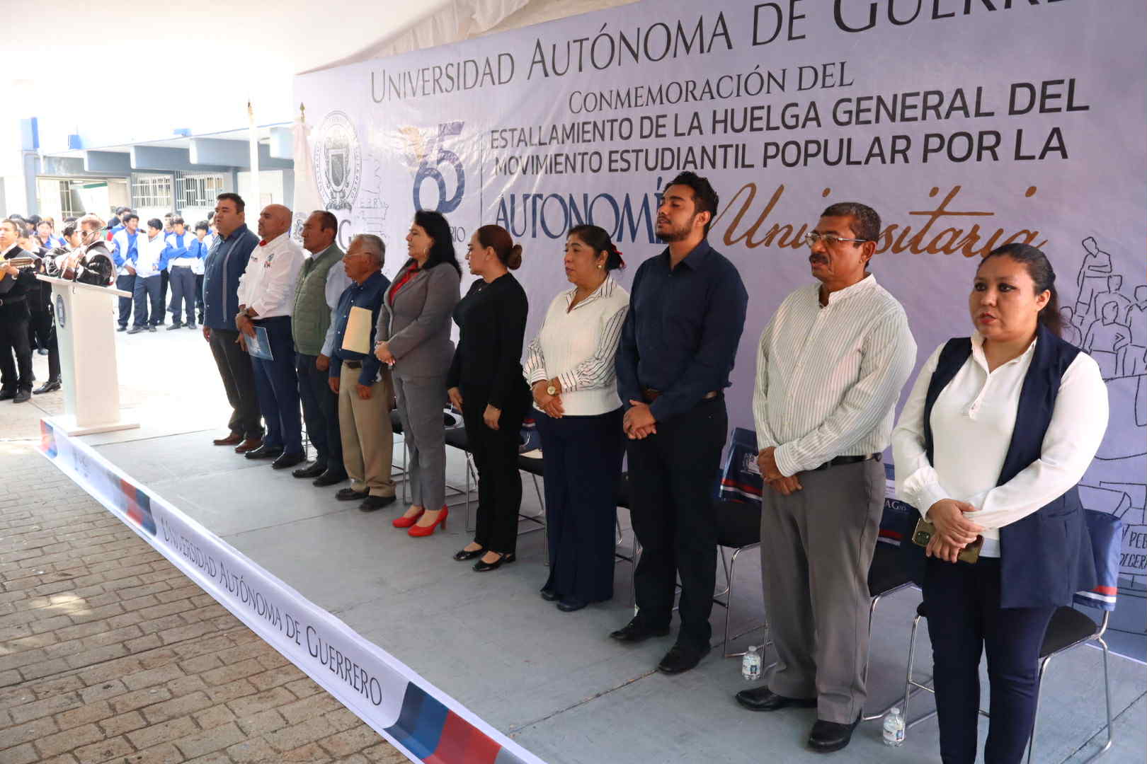 Chilpancingo, 21 de octubre de 2025.- La Universidad Autónoma de Guerrero (UAGro), conmemoró el 65 aniversario del estallamiento de la huelga general del movimiento estudiantil por la Autonomía Universitaria.