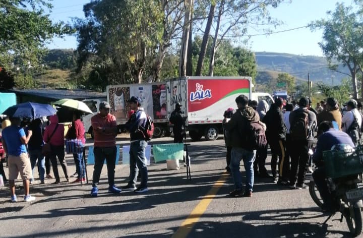 Unas 30 personas entre padres, madres y alumnos se plantaron desde las 6 de la mañana sobre esta carretera a la altura del crucero de Santa Ana en espera de que acudiera alguna autoridades.