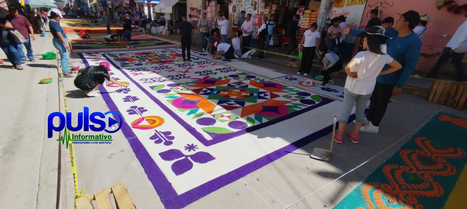 Sobre la calle Guerrero, cerca de la Clínica de Salud, unos muchachos elaboraron con aserrín una enorme bandera de Palestina y arriba una enorme figura del Señor del Nicho; los muchachos que lo elaboraron indicaron que era para pedir un alto al genocidio que Israel está cometiendo contra la nación Palestina.