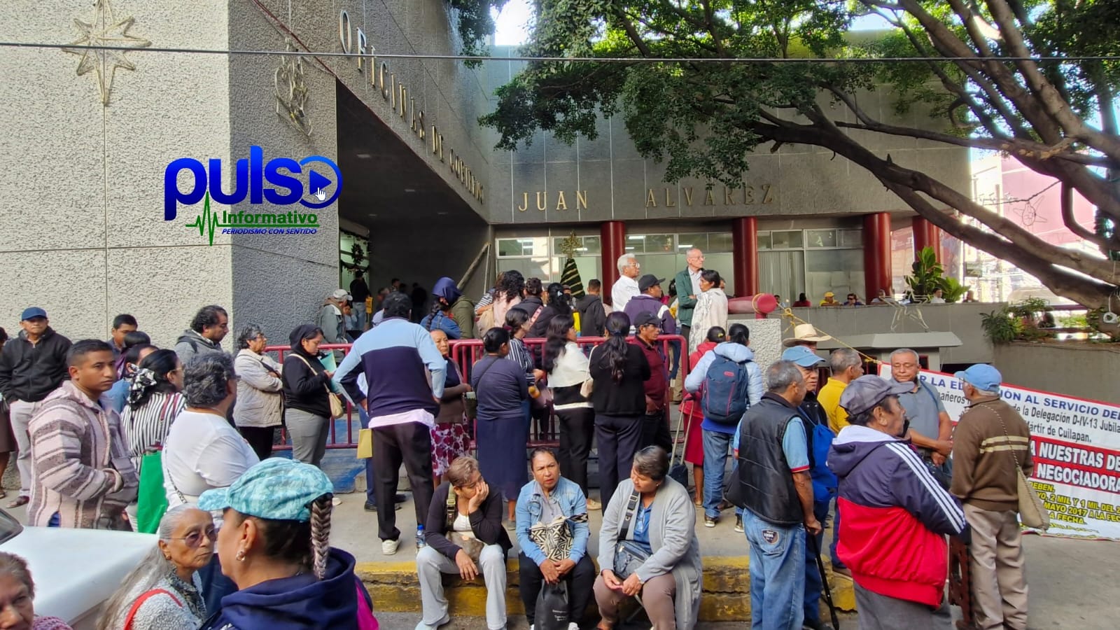 El grupo de manifestantes se plantó en los accesos del edificio impidiendo el ingreso de los trabajadores, así como de personas que acuden de diferentes partes de la entidad para realizar trámites, mientras también bloqueaban la Calle 16 de Septiembre.
