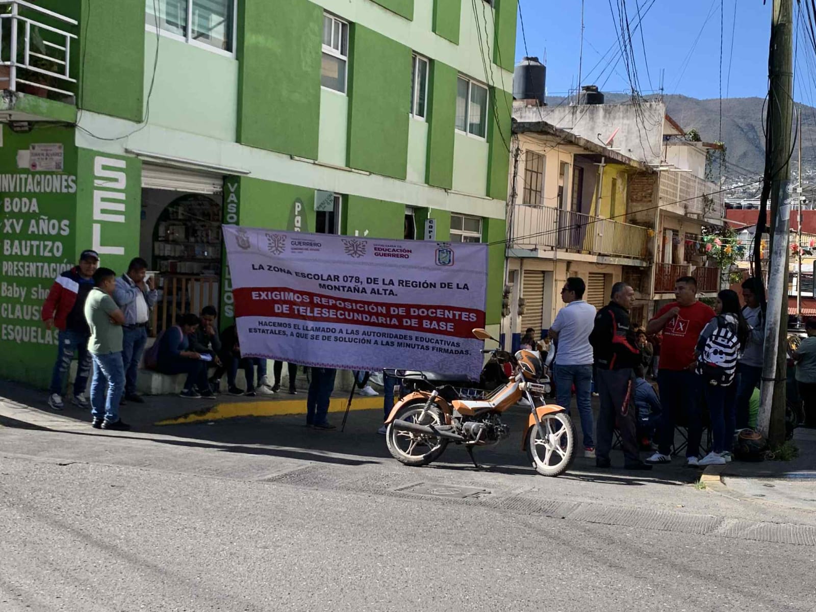 Chilpancingo, 12 de enero de 2026.- Maestros de la zona escolar 078 de telesecundaria correspondiente al municipio de Tlacoapa bloquearon calles en Chilpancingo para exigir la reposición de 8 colegas para tres comunidades.