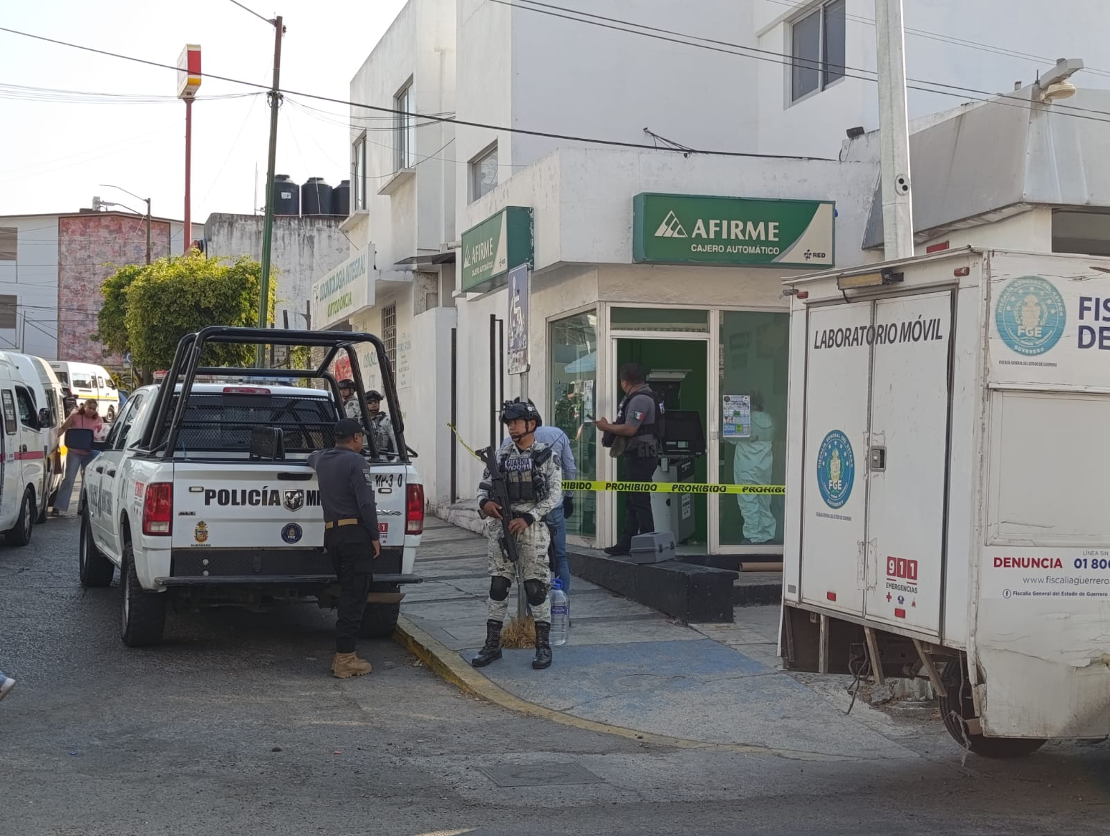 Chilpancingo, 12 de febrero de 2026.- Robaron el dinero de un cajero automático de la sucursal bancaria Afirme ubicado en el centro de la capital de Guerrero.